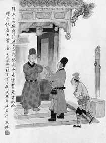 “拜年”,王弘力画《古代风俗百图》
