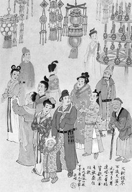 元宵节“灯会”,王弘力画《古代风俗百图》