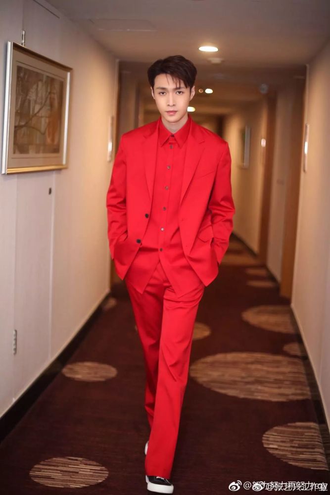 “男士军团”中,“最红”的造型担当绝对是张艺兴,Valentino的西服套装鲜艳炙热,尽显他的青春活力。
