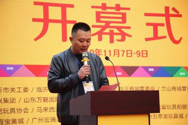 马总首先向参会的领导和嘉宾表示欢迎。他在致辞中说,第五届中国(临沂)国际玩具产业及婴童用品博览会得到了临沂市关工委、临沂市文旅局、临沂市会展办、市商城管委会、兰山商城管委会等各相关部门的大力支持,同时得到了印尼玩具协会、河北省玩具和婴童用品协会、浙江省云和玩具协会、广州宏腾展厅、广东潮域展览、临沂永兴国际玩具批发城等各省市商协会的鼎力协助。全国各级媒体都给予了大力报道。