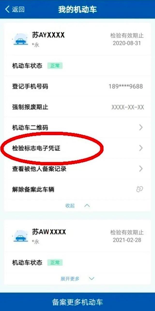 办理机动车登记、核发检验标志业务时,公安交管部门将通过信息系统自动生成、自动推送检验标志电子凭证,机动车所有人可登录互联网交通安全综合服务平台或者“交管12123”手机APP,直接查看、下载使用。
