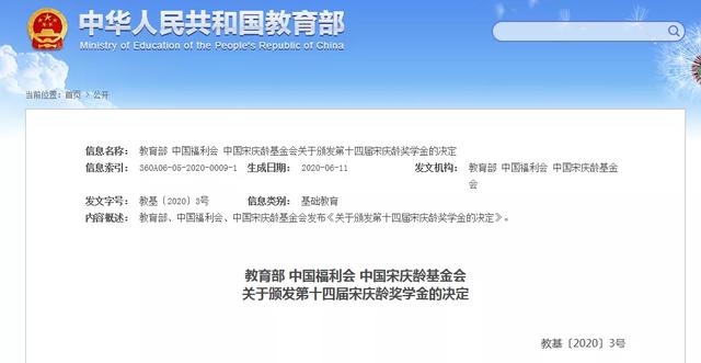 《关于颁发第十四届宋庆龄奖学金的决定》。