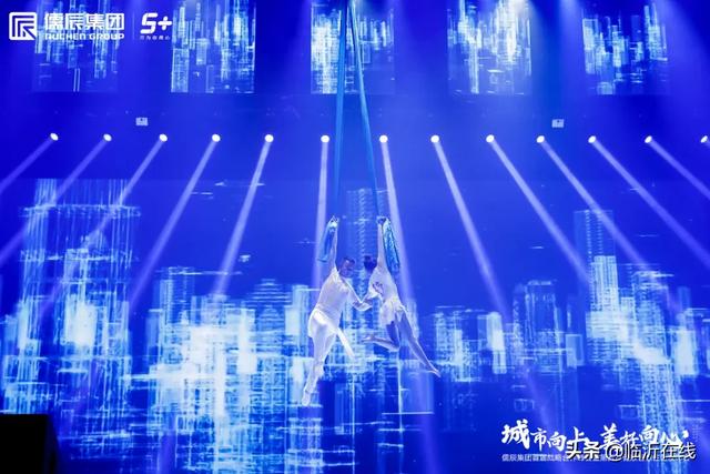 高空威亚杂技《向上的力量》将观众引入新的一幕,流转的灯光,动人的音效,呈现出刚与柔的碰撞,力与美的结合,彰显了儒辰集团发展过程中,与合作伙伴携手同行的团结奋斗精神。