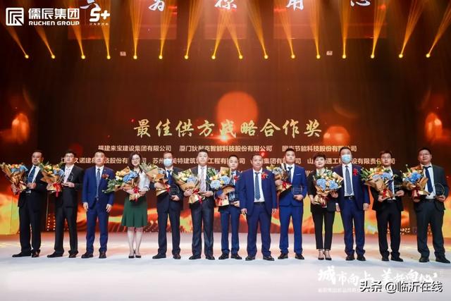 随后,儒辰集团向中国工商银行临沂分行等7家金融机构颁发最佳银企战略合作奖;向福建来宝建设集团有限公司等 10 家供方单位颁发最佳供方战略合作奖;向笛东规划设计(北京)股份有限公司、上海天华建筑设计有限公司等 10 家合作伙伴颁发最佳服务战略合作奖,以感谢各位合作伙伴对儒辰发展的支持与帮助。