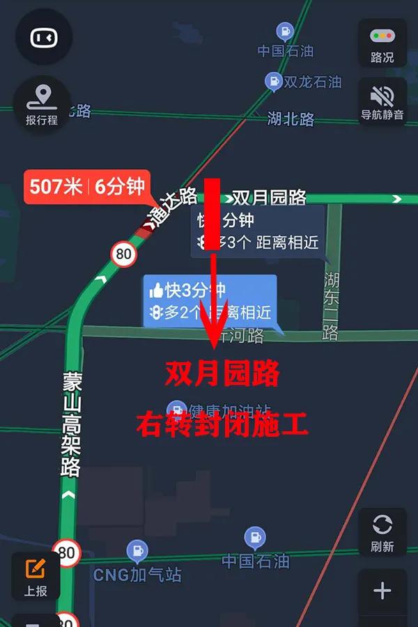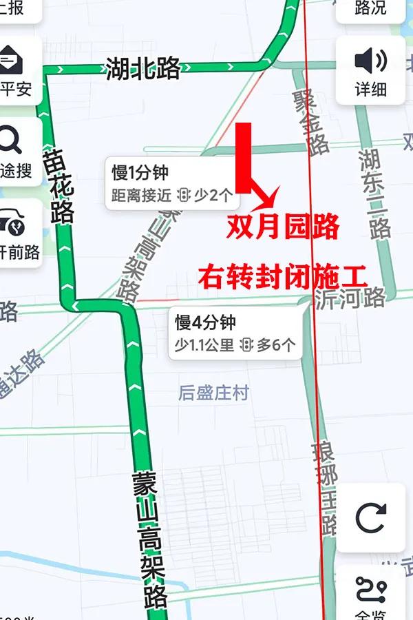 如图一:高峰期可以选择蒙山高架路---沂河路---苗花路---湖北路---通达南路