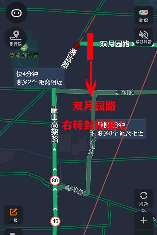 如图三:高峰期可以选择蒙山高架路---陶然路---琅琊王路---化武路(沂河路)