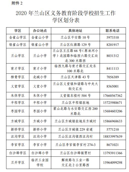 2020年兰山区义务教育阶段学校招生工作