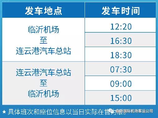 为更好地满足临沂国际机场往返连云港地区旅客的出行,7月15日临沂国际机场将开通至连云港汽车总站直达班车,方便连云港周边市民乘坐临沂国际机场航班出行。以后在通过临沂国际机场中转到连云港的旅客不必再到临沂长途客运站换乘,在机场就可以乘坐直达班车!这也是临沂国际机场开通的首条跨省陆空联运线路。