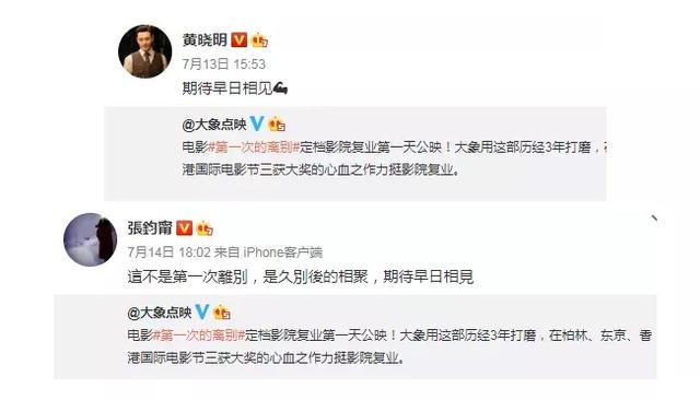 黄晓明、张钧甯等也在微博上为该影片上映打气。