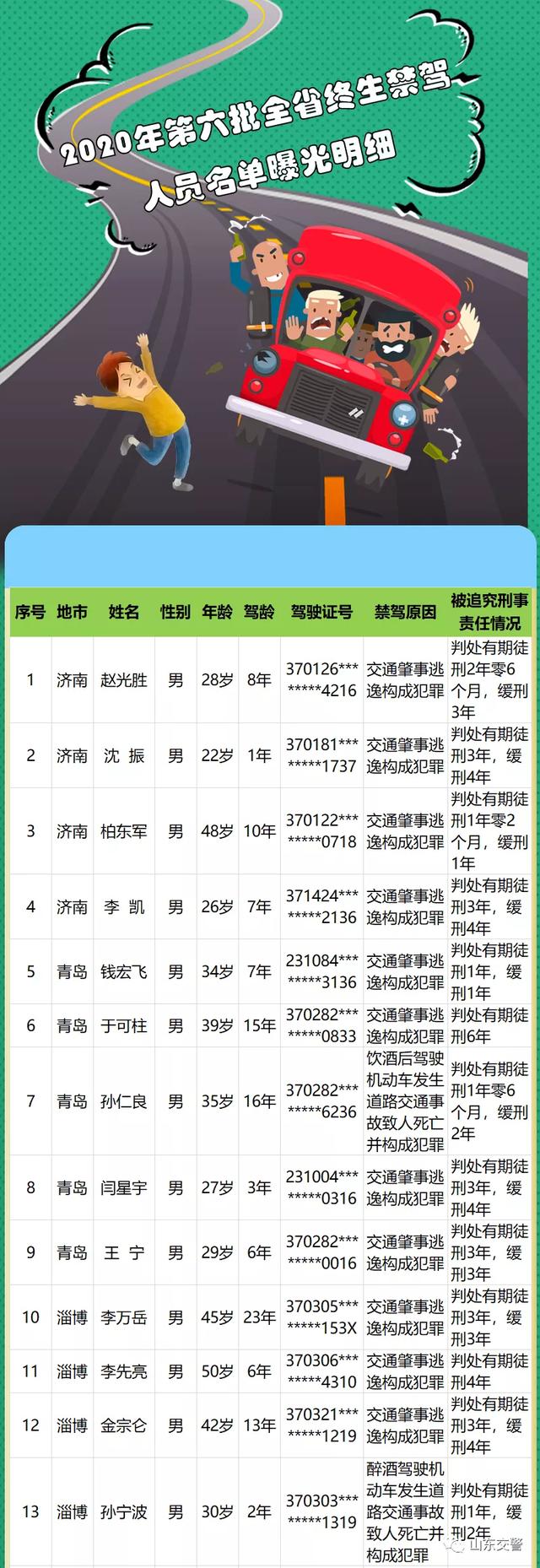 下面这份终生禁驾名单中
