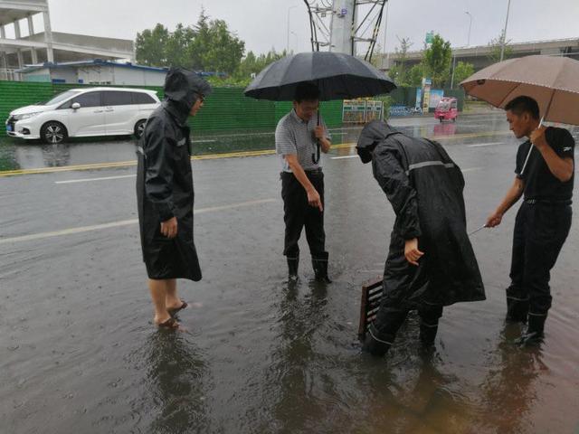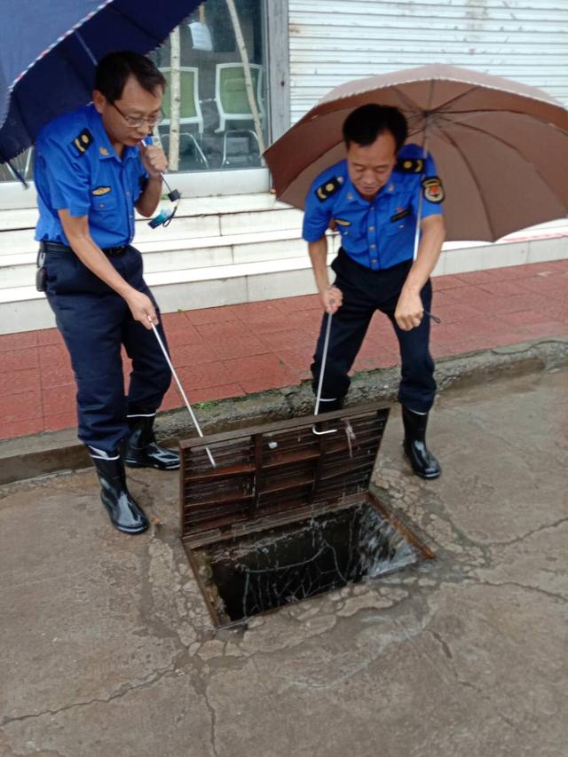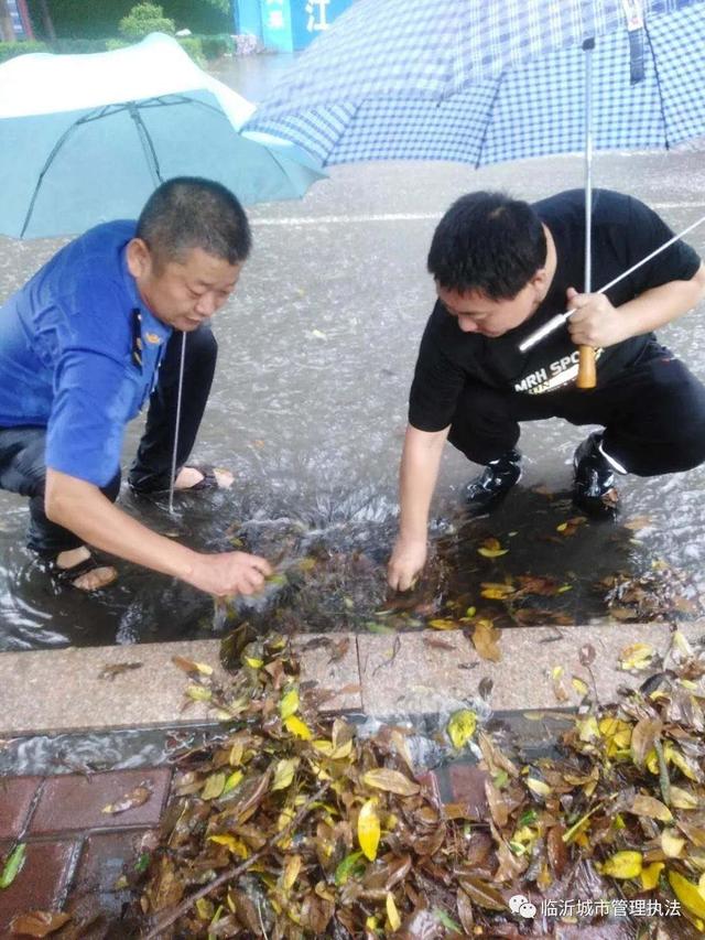 预警就是命令,临沂市城市管理行政执法支队立即启动防汛应急预案,根据支队防汛分工,责任路段、支队除值班人员外全体出动,加大对网格责任区域、主次干道积水现象进行排查,使用铁钩、铁锹、撬棍等工具及时清理堵塞排水管网的树叶和杂物,使积水快速排入下水管道,及时排除路面险情。遇有积水严重的路段,及时与排水处的同志联系,排水应急抢险处置组立即赶到,处置险情。