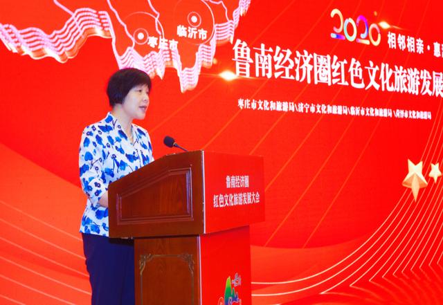 吴红在致辞中指出,加快鲁南经济圈一体化发展,是省委、省政府的重大决策部署。鲁南四市地缘相近、人缘相亲、文缘相通、往来密切,推进一体化发展特别是文化旅游融合发展正当其时,发展红色文化旅游有着深厚的革命历史文化积淀。鲁南四市携手同行,突破区域限制,突出区域特色,整合红色资源,对内推出同城化政策惠民利民,对外打造精品线路互推互补,对于推进鲁南乃至整个山东的红色文化旅游发展,推动山东红色文化旅游进一步走向全国,打造红色旅游新高地等具有重要的意义。省文旅厅将继续高度关注鲁南区域红色文化旅游发展,从政策扶持、品牌建设、产品提升、市场开发等方面给予更多倾斜,支持鲁南经济圈四市加强联合,做大做强红色旅游,做好红色引领文章,推动文化旅游产业提档升级,在全省旅游发展和地方经济建设中发挥更大作用。