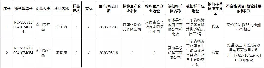 莒南县乐尚超市有限公司销售的冻乌鸡,