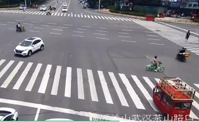 随后民警调取了事发路段监控视频,通过视频显示:当天11时50分,肇事摩托车沿茶山路由北向南行驶至与武汉路时,与沿武汉路由西向东左转弯的电动自行车相撞,案发后摩托车驾驶员意图驾驶摩托车逃逸,但摩托车因撞击出现故障无法启动,他只得选择弃车逃逸。