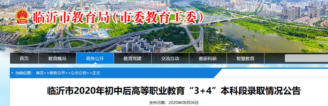 临沂市2020年初中后高等职业教育“3+4”本科段录取情况公告