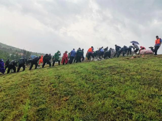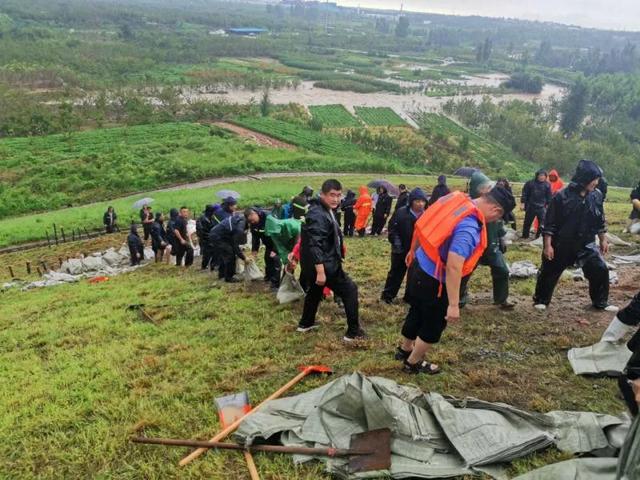 八湖镇干部群众齐上阵,封堵倒灌河水,共同防洪保家园。