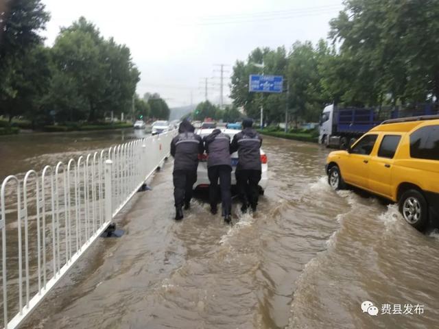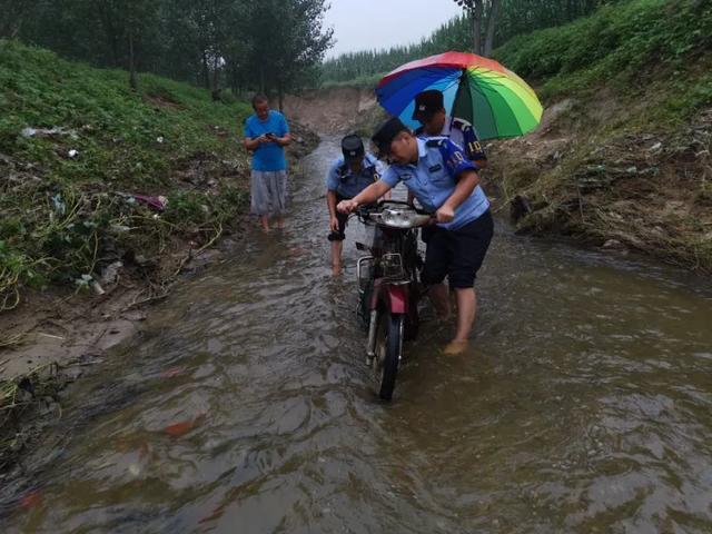 常路镇值班民警及队员将熄火车辆推到安全区域。
