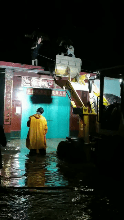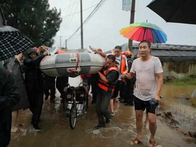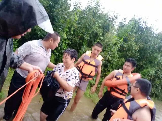 部分群众被困屋顶,消防队伍及社会救援队伍迅速调运冲锋舟等解救被困群众。