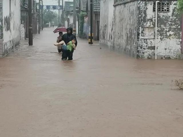 汤头街道民警紧急转移并妥善安置受灾群众。