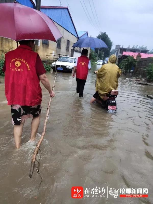 ——14日,兰山区义堂镇陈围子村支部领办志愿服务队的党员们冒着大雨,挨家挨户开展强降雨防御宣传工作,提醒居民提高房屋漏水、雨水倒灌和防雷防触电意识,筑牢群众安全防线。