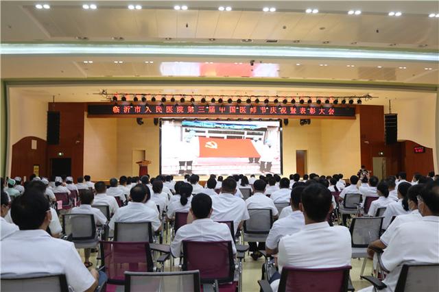 临沂市人民医院党委副书记、院长李凤鸣宣读《庆祝第三个中国医师节致全院医师的慰问信》