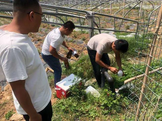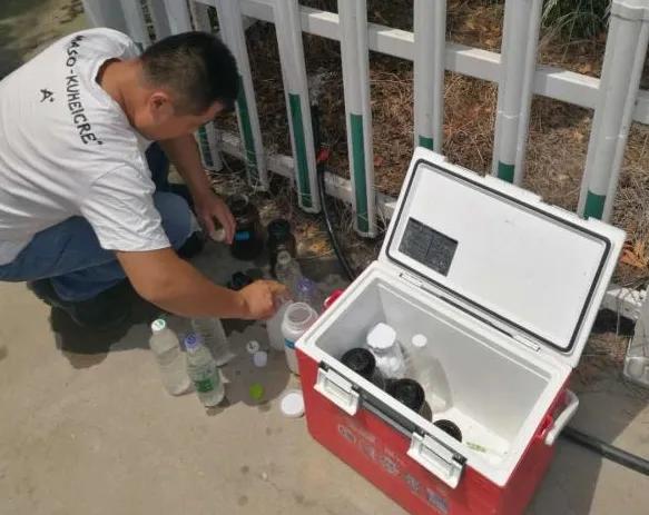 罗庄生态环境分局执法人员委托第三方检测公司对黄山镇贫困饮用水水源地四个点位进行水质检测。