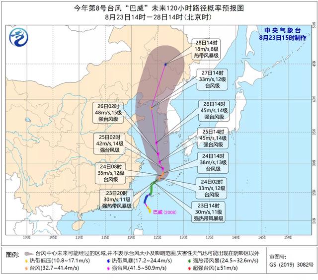 今年第8号台风“巴威”未来120小时路径概率预报图