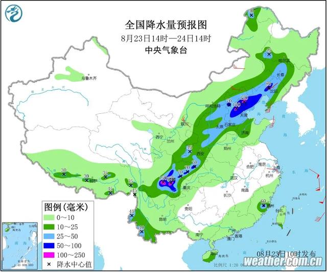 23日夜间到24日白天,多云到阴,西北部地区有中雨局部大雨,其他地区有小到中雨,并伴有雷电,偏南风3~4级阵风5~6级,雷雨地区雷雨时阵风7~8级,气温24~31℃;