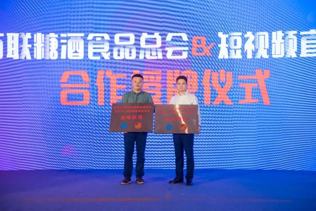在市工商联短视频直播商会成立后,市糖酒总商会会长刘广宝与市工商联短视频直播商会会长刘义林进行了合作授牌仪式。