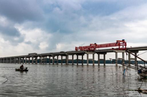 K98+014.5沂河特大桥跨越沂河及两侧大堤,全长2308.6m,路线右夹角105度,上部结构采用装配式先简支后连续预应力混凝土箱梁及现浇预应力混凝土箱梁。自2019年10月19日至2020年8月24日,沂河特大桥共完成416片箱梁。