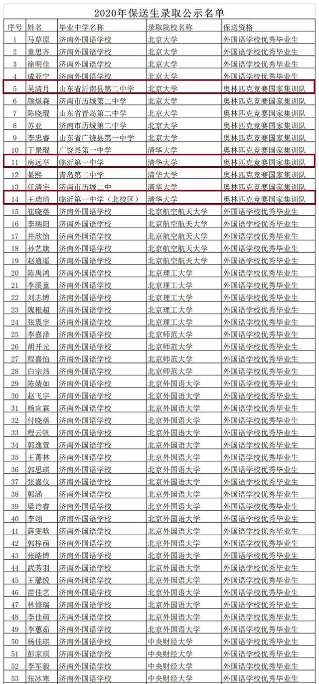 公示了!临沂3名学霸直接保送清华、北大