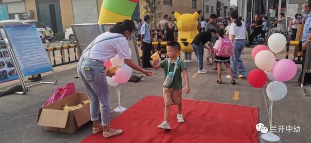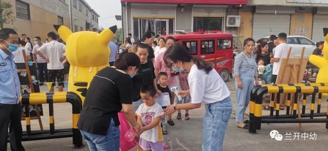 两位老师穿上皮卡丘的人偶服在门口向小朋友们开心地打着招呼~一份份暖心的小礼物带着老师的祝福被送到孩子们的手中,还带着略微睡意的孩子们立刻清醒了~