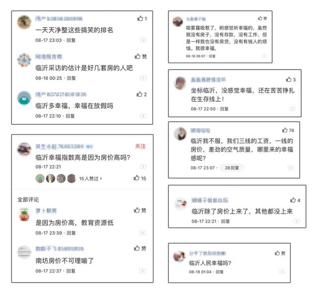 在写这篇文章之前,我们在网上查看了网友们发表的观点,首先对于幸福感城市的评选,不出所料的一片质疑声。