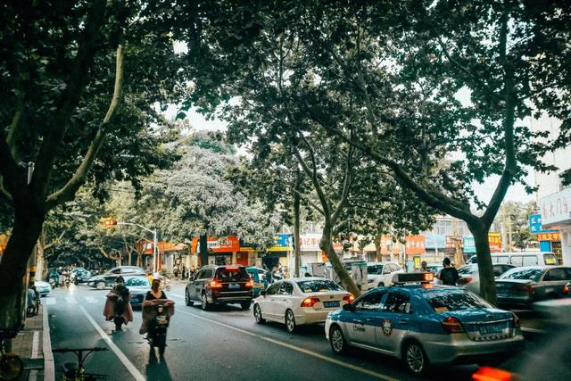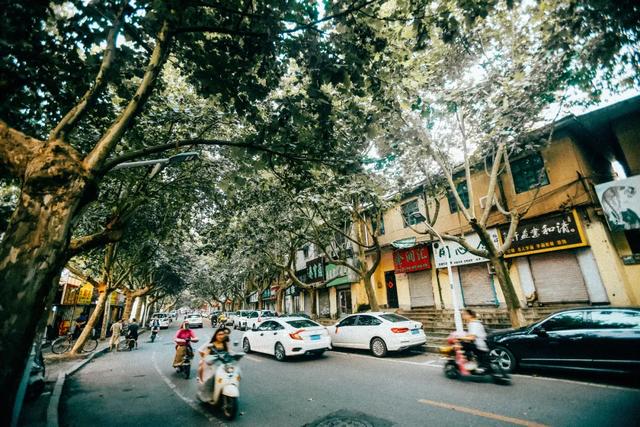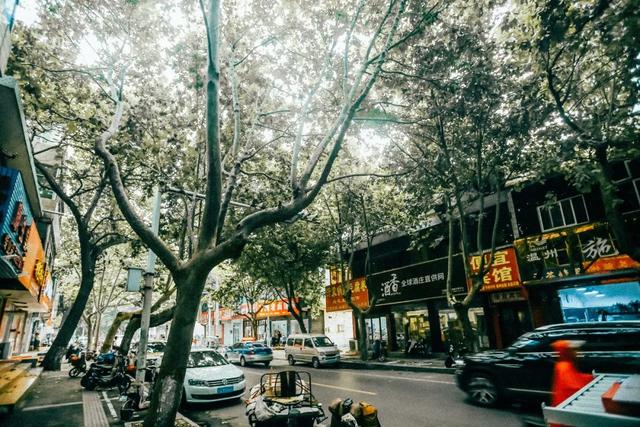 傍晚时分,漫步在洗砚池街,路边生长着高大的梧桐树。夏秋时节,树荫遮蔽了路面、蝉鸣不绝于耳,闹市里拐进这条街却感觉清净了许多、生活的节奏也慢了下来。