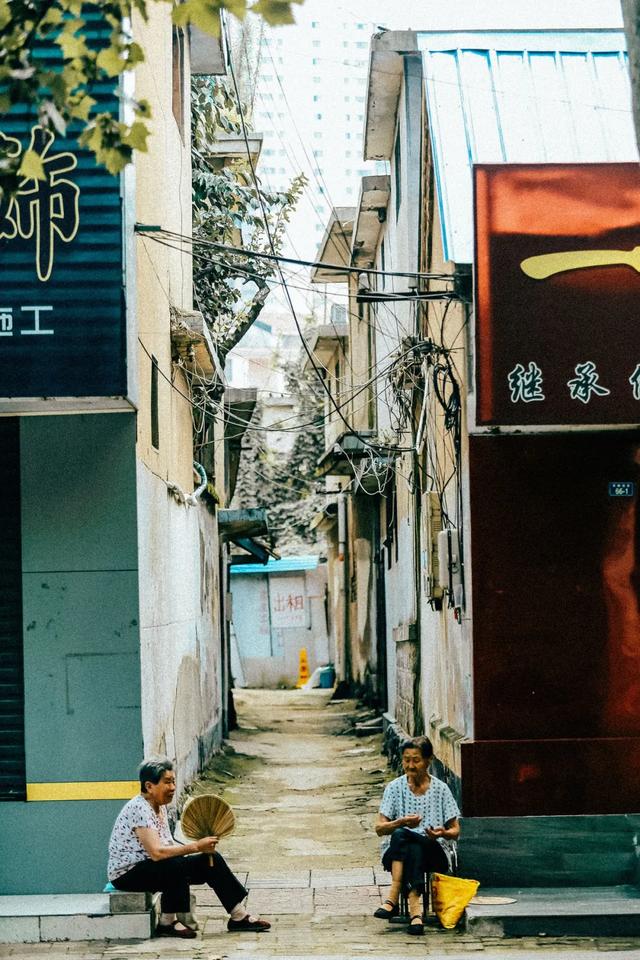 在巷子口席地而坐的老奶奶,手里拿着经典的蒲扇,一边闲话家常,一边等待下班归来的子女们,悠然闲适的样子,让人不禁羡慕老城区缓慢的生活节奏~