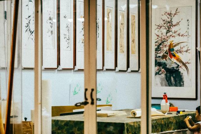 这里有上百家充满着墨香的书画装裱、收售的店铺。一家紧挨着一家的书画店铺,很有城市特色。