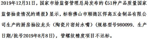 半年内两次抽检3款产品不合格