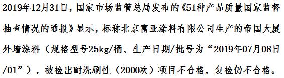 质量黑榜7:富亚涂料