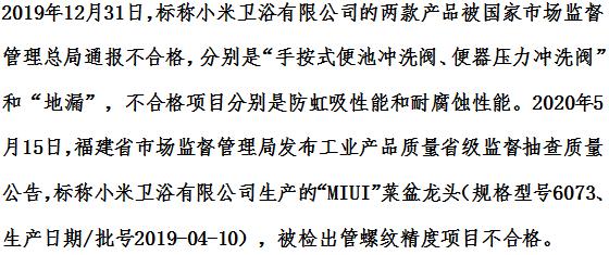 质量黑榜5:小米卫浴
