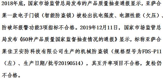 质量黑榜8:亚萨合莱门锁