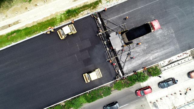建设过程中,项目积极推广应用“四新”技术,沥青面层施工中采用SP1860-3超大型抗离析摊铺机进行一次性全断面摊铺,解决了传统作业方式可能产生的纵向接缝、平整度不均等问题,整体施工效率显著提升,降低了施工成本;铣刨的老路面清扫过程中,在全国首次采用六排放标准的单发、无级变速干式吸尘车,在节省燃油的同时,一次性清扫达到最佳效果;路基边坡生态保持采用植物纤维毯生态防护替代拱形护坡;利用BIM协同平台进行精细化建模和动画模拟施工交底,精准计算每道施工工序所需时间和资源;上跨京沪高速匝道桥部分采用钢箱梁分段预制,按拼装顺序运输至现场后,依次吊装、拼装焊接完成施工等方式,达到了快速便捷、降低安全风险、绿色环保、品质优良、智能建造等要求。
