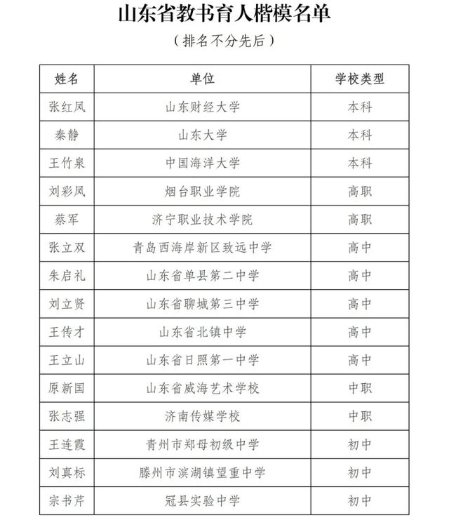 为深入贯彻习近平新时代中国特色社会主义思想、党的十九大精神和十九届二中、三中、四中全会精神,全面落实全国全省教育大会精神,生动展现我省教育工作者立德树人、潜心教学的精神风貌,倡导全社会形成尊师重教的良好风尚,省委宣传部、省教育厅组织开展了“2020 年度齐鲁最美教师”和山东省教书育人楷模评选活动。活动开展以来,引起社会各界和广大教职员工的高度关注,公众参与热情屡创新高,掀起了学习先进、崇尚先进、争当先进的热潮。经各市、各高校推荐,采取专家网络评审、会议评审等方式,经过多轮遴选,最终评选出孔令让等10名“2020年度齐鲁最美教师”和张红凤等 30名山东省教书育人楷模,现予公布。