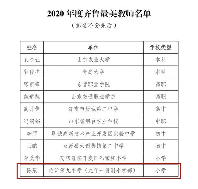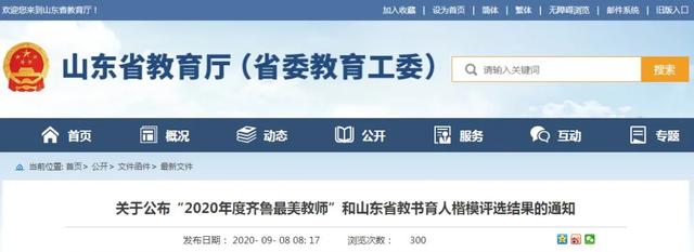 中共山东省委宣传部 山东省教育厅关于公布“2020 年度齐鲁最美教师” 和山东省教书育人楷模评选结果的通知鲁教师函〔2020〕27 号