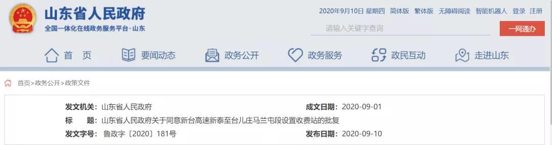 同意新台高速新泰至台儿庄马兰屯段设置7处收费站,分别为:武台、蒙山、郑城、白彦、山亭、枣庄东、台儿庄北。收费期限25年。具体收费标准和起止时间由省政府有关部门核定后另行公布执行。