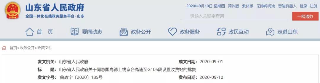 同意国高德上线京台高速至G105段设置1处收费站,名称为:王律庄。收费期限25年。具体收费标准和起止时间由省政府有关部门核定后另行公布执行。