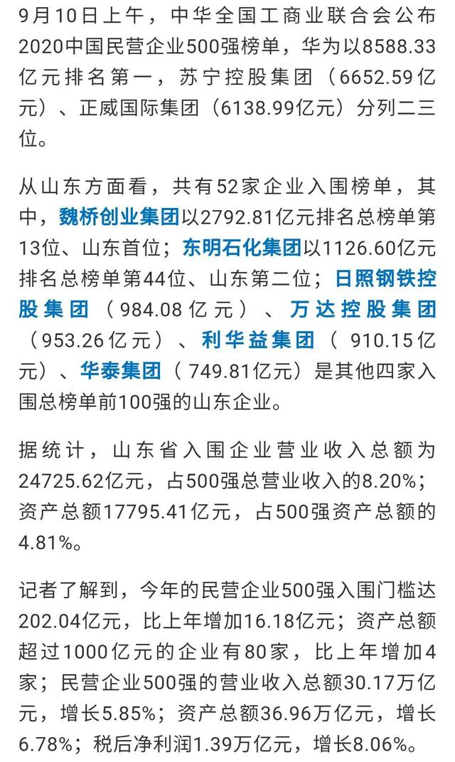 中国民营企业500强!临沂这3家企业入围!