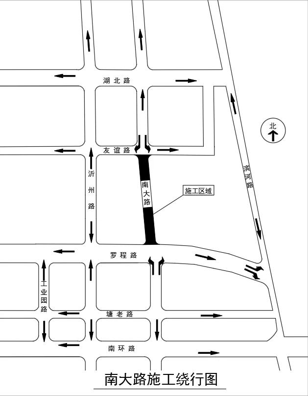 因罗庄区南大路大修工程需要,为保障施工期间道路交通安全,根据相关规定,决定对南大路(友谊路至罗程路)进行封闭施工,具体通告如下: