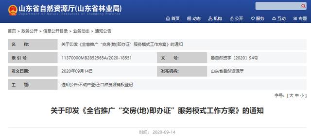 近日,山东省自然资源厅、山东省住房和城乡建设厅等多部门印发《全省推广“交房(地)即办证”服务模式工作方案》。