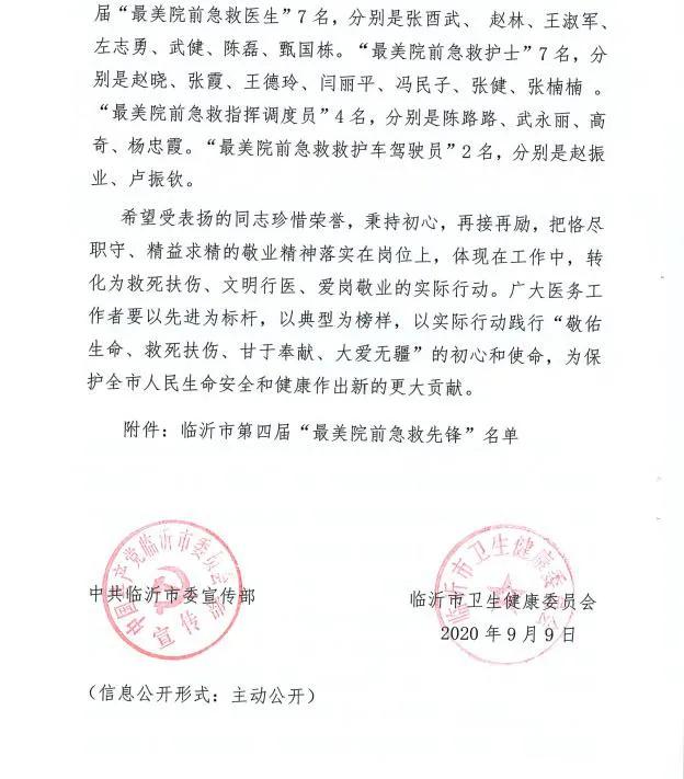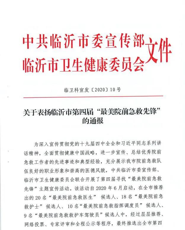 临沂市第四届“最美院前急救先锋”
