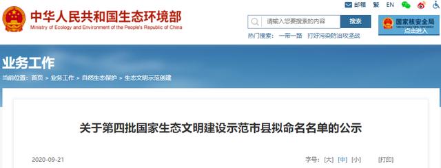 第四批国家生态文明建设示范市县拟命名名单进行公示